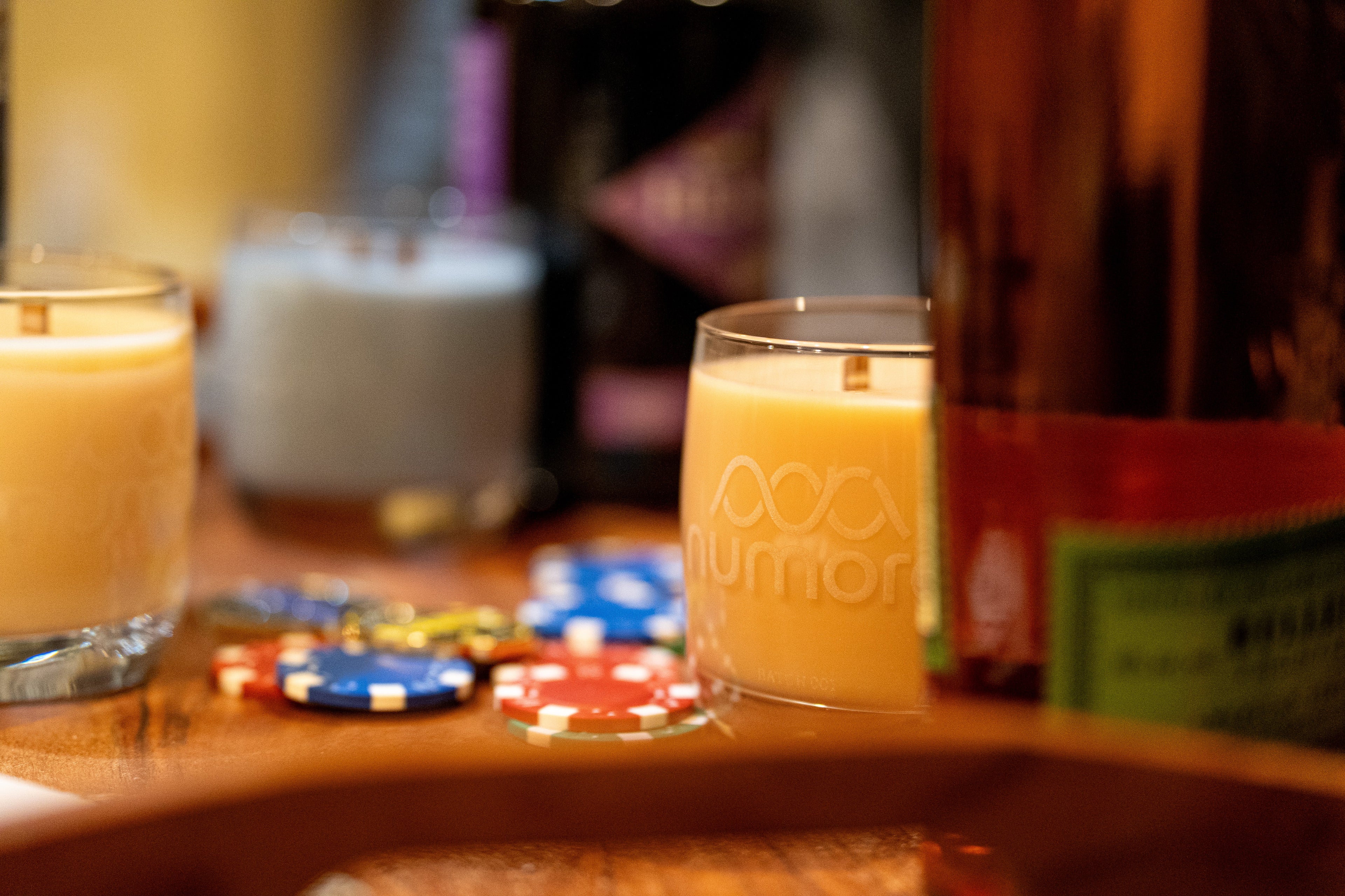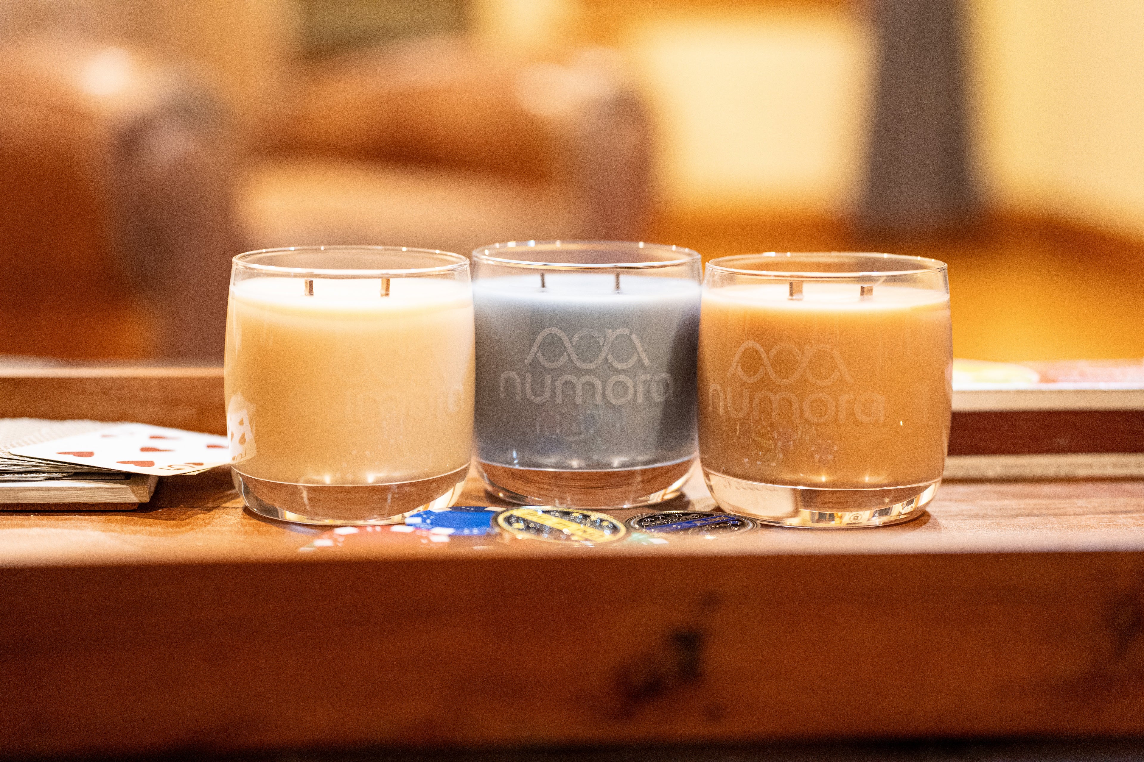 Numora is a premium candle designed to belong on a bar cart or the coffee table while your watching football. Each one starts as a dual wood wick candle and ends as a heavyweight whiskey glass you actually want to keep.
